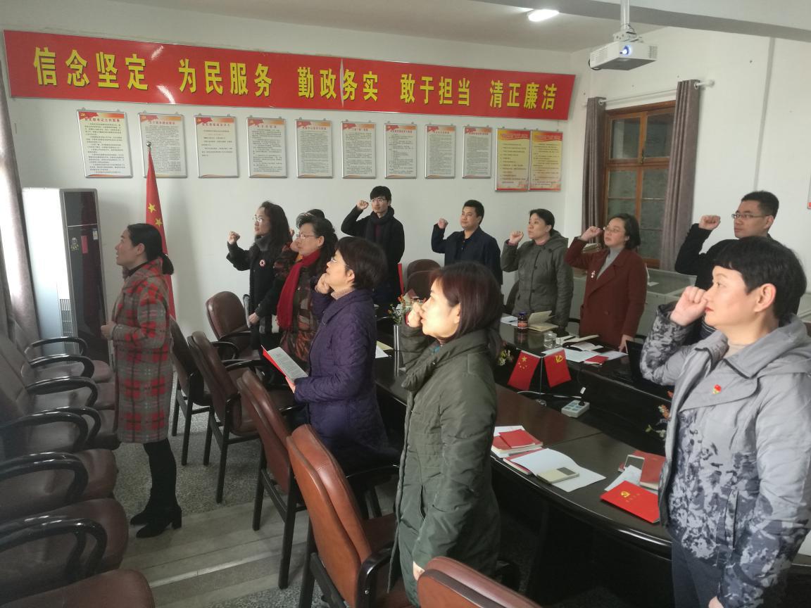 支部纪检委员全寒凤同志首先带领机关支部全体党员面向党旗宣誓,重温入党誓词。