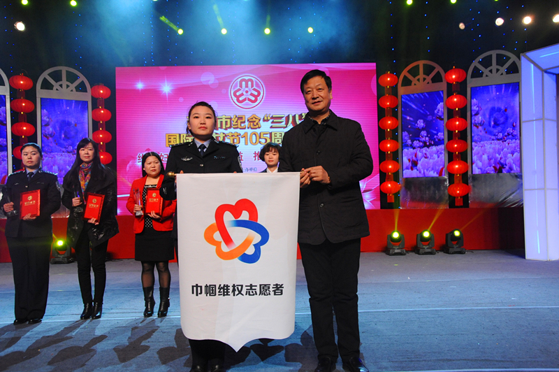市委常委、宣传部长王守卫为巾帼维权志愿者队伍授旗