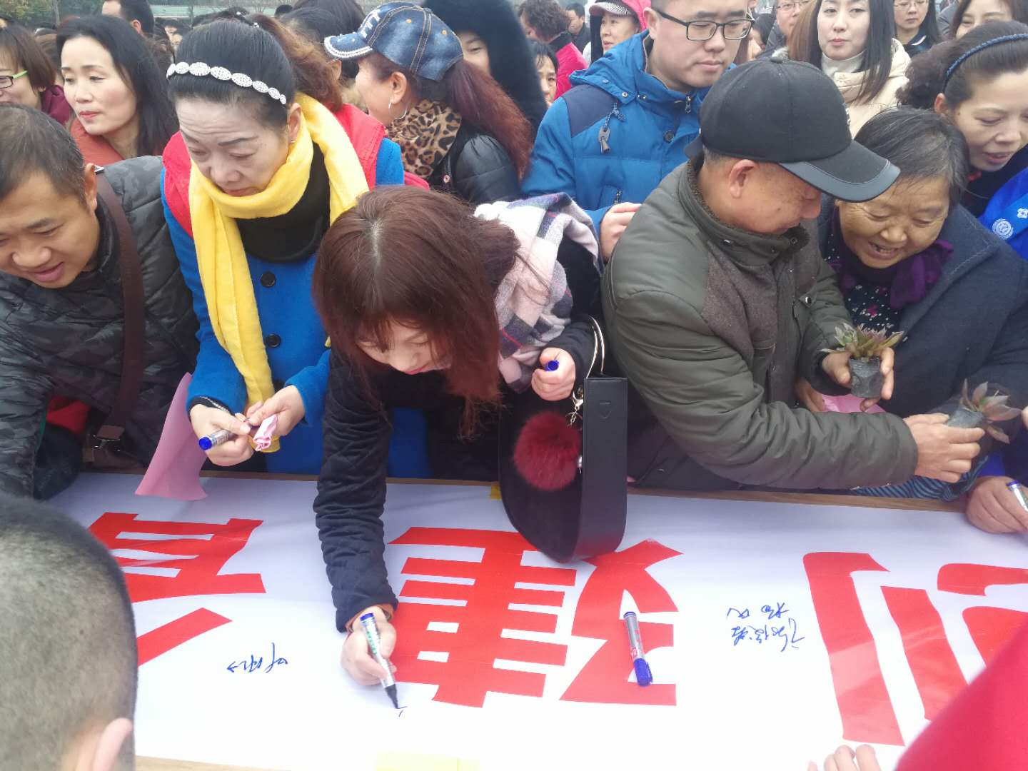 大家高兴地争抢着为我市创建森林城市签名