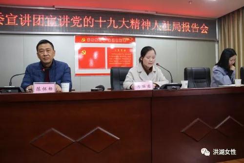 为贯彻落实洪湖市委和全国妇联、省妇联、荆州市妇联关于做好党的十九大精神宣讲工作的部署和要求,洪湖市妇联主席廖丽君作为市委宣讲团成员到人社局进行十九大精神宣讲。宣讲活动由市人社局党组书记、局长陈怀标同志主持,团市委、市妇联全体机关干部以及人社局全体干部职工100多人参加了此次学习。