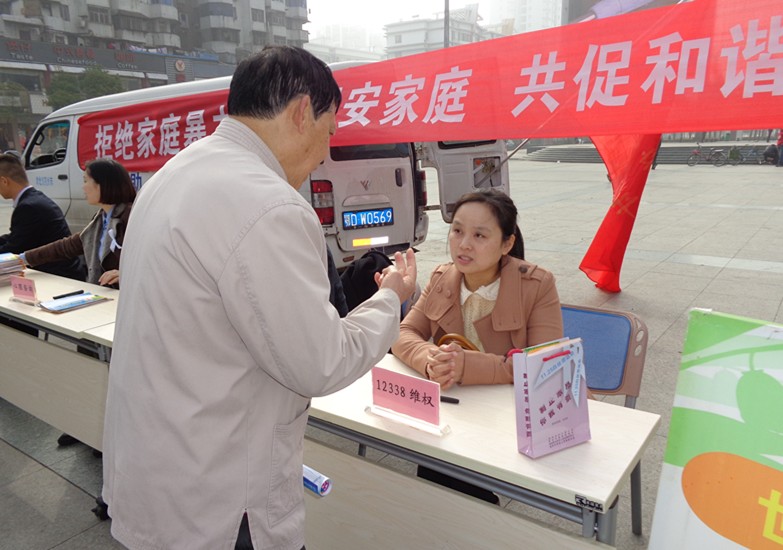 活动现场,市妇联工作人员向广大居民发放反家庭暴力宣传材料,同时,专设心理咨询和12338维权法律和心理咨询服务。
